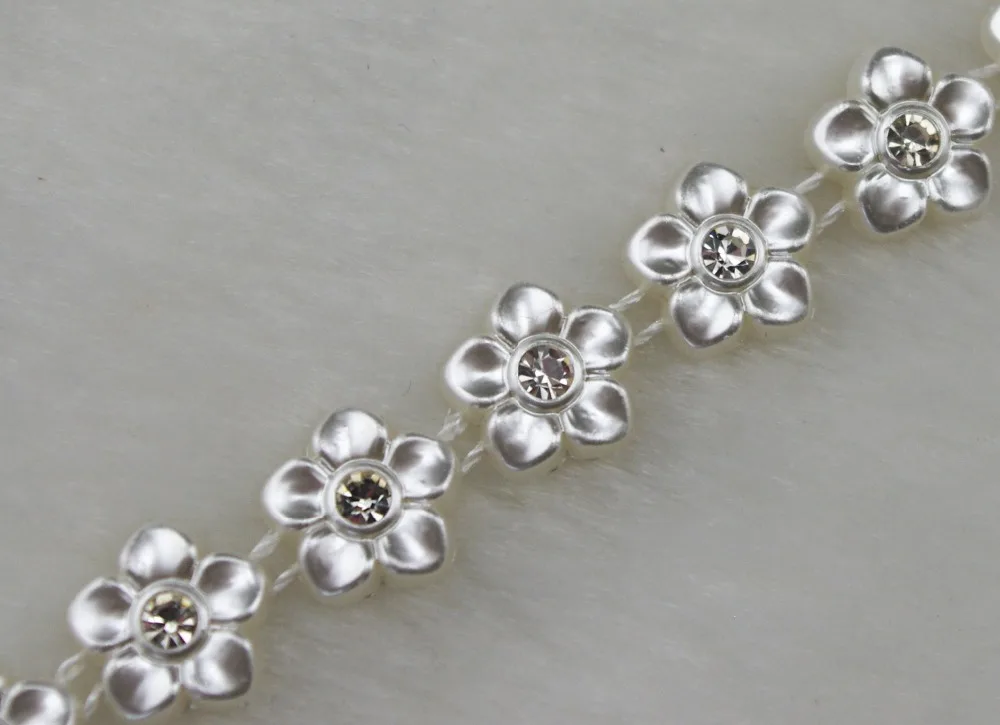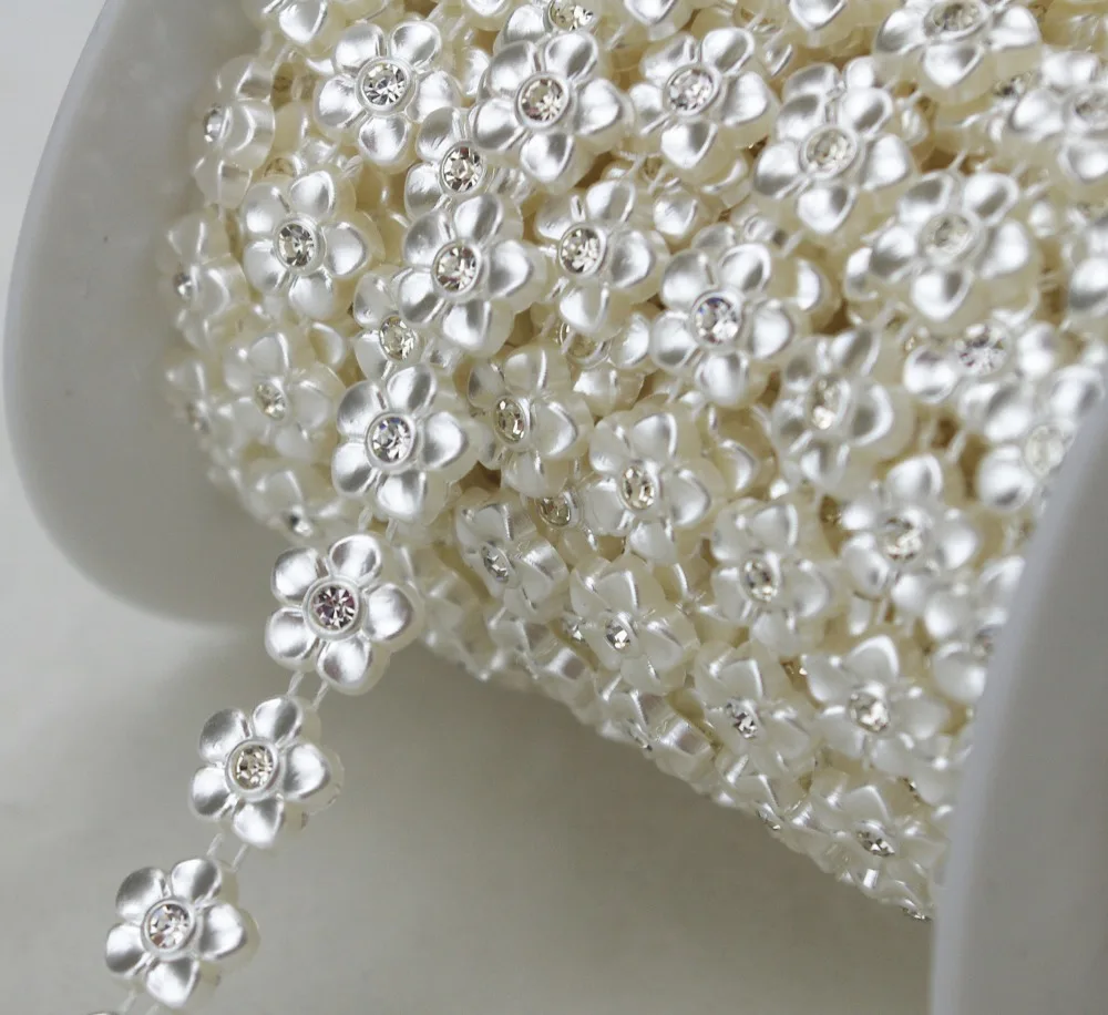 Addition Information of 10y 10mm flower Shaped ivory Pearl Rhinestone Chain Trims Sewing Crafts Costume Applique Wedding De
