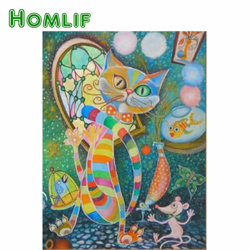 HOMLIF diy 5d diamond painting bedroom Wall Sticker rhinestone cross-stitch kits gift cat Diamond embroidery picture rhinestones