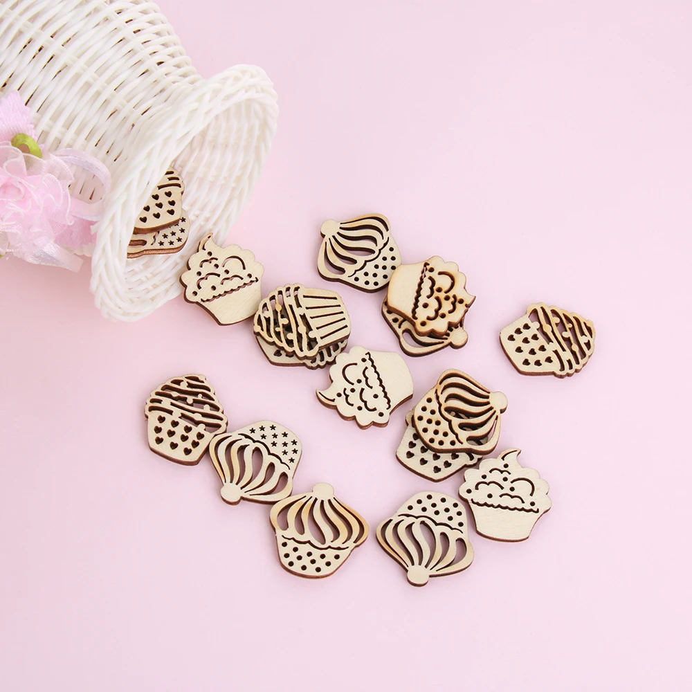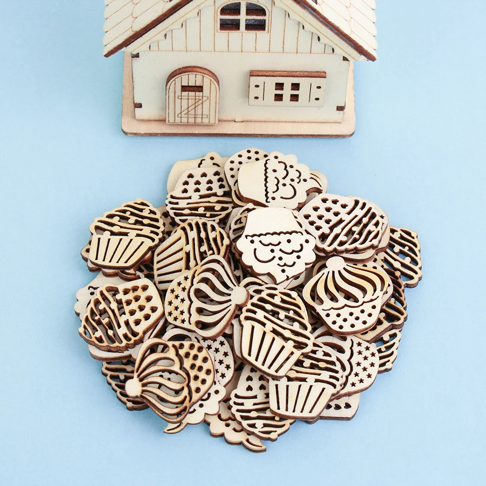 50PCS/pack Mixed Hollow Cake Pattern Rount Nature Wooden Scrapbooking Art Collection Craft for Hand