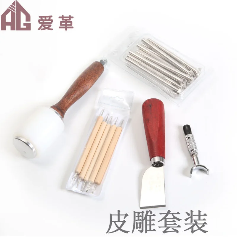 Leathercraft Tool Sets New Beginner Engraving Printing Hammer Press Scraper Rotary Knife Cutter Art